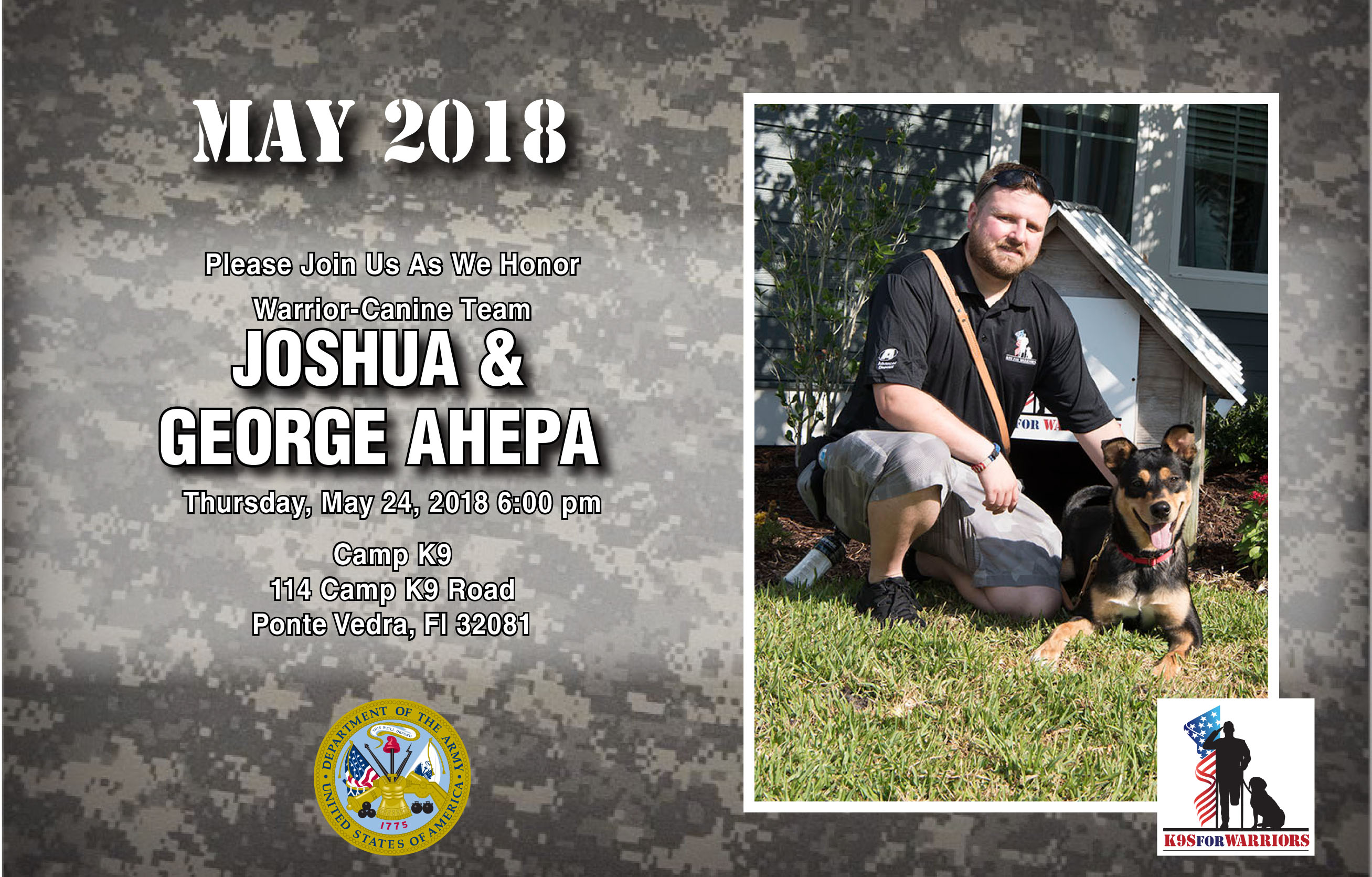 I am so excited to let you know that George AHEPA will be graduating on May 24th, 2018 at 6:00 pm EST. He is doing so amazing with his new warrior, I hope you will be able to attend the ceremony. If you are not able to please watch on Facebook Live on our page.